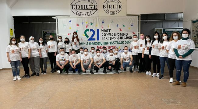 21 Mart Down sendromu günü sebebiyle özel olarak farkındalık tişörtleri hazırlayan ve gün boyu bu tişörtleri giyen Edirne Giyim Sanayi çalışanları aynı zamanda şirket içerisinde de bir Down Sendromu Farkındalık köşesi hazırladılar. Gün boyu şirket içerisindeki ekranlardan da down sendromuna ilişkin videolar yayımlayan EGS çalışanları böylece bu konunun önemine dikkat çektiler.