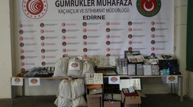 Avusturya'dan yola çıkan ve Kapıkule gümrük sahasından Türkiye'ye giriş yapmak üzere gelen bir kişinin otomobilindeki kontrolde ise koleksiyon halinde 129 kalemde pul albümü, pullu kartpostal ve pul defterleri ele geçirildi.