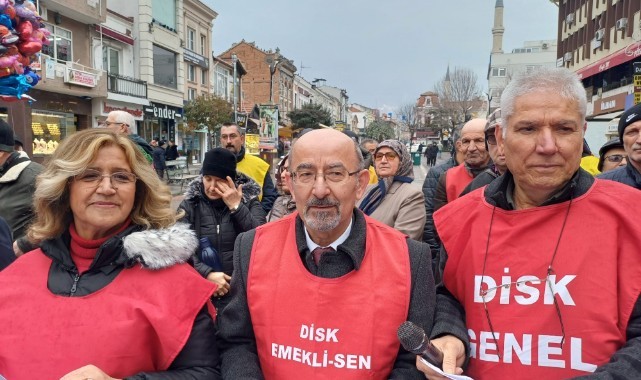 Disk/Emekli-Sen Edirne Şubesi, “Hayat Pahalılığı, Zamlar ve Emeklilerin Talepleri " konulu basın açıklaması gerçekleştirdi. Emeklilerin aldığı maaş ile artık geçinemediği ve emekli maaşlarına yapılan zamların yetersiz kaldığı belirtildi. Disk/Emekli-Sen Edirne Şubesi Mali Sekreteri Ekrem Kaya, “Bu Ülkenin tüm zenginliklerini ve değerlerini üreten emekliler olarak sahte müjdelere ve vaatlere kanmıyoruz. Bizleri sığdırmaya çalıştığınız kalıplara sığmıyoruz. Bizlere dayattığınız yaşam koşullarına boyun eğmiyoruz. Ne verdiğiniz emekli aylıklarını, ne aylıklarımıza yaptığınız zam oranını, ne de dini bayramlarda verdiğiniz ikramiye rakamlarını asla kabul etmiyoruz” dedi.