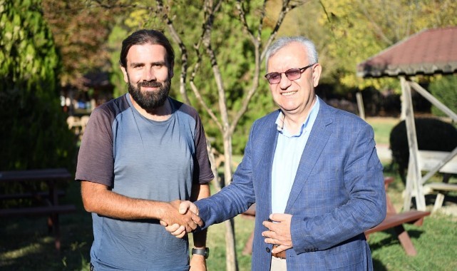 İlçedeki Mehmet Gemici Cennet Parkı'nda, Belediye Başkanı Mustafa Helvacıoğlu tarafından ağırlanan Etemoğlu, yürüyüşü hakkında bilgi verdi.