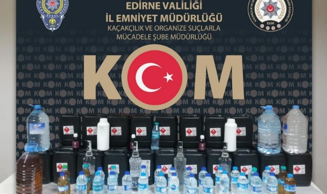Edirne'de düzenlenen kaçakçılık operasyonunda 140 litre etil alkol ve 38 şişe sahte içki ele geçirildi.