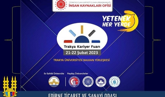 Edirne Ticaret ve Sanayi Odası’ndan (ETSO) yapılan açıklamada, 21-22 Şubat 2023 tarihlerinde Trakya Üniversite Balkan Kongre Merkezi’nde düzenlenecek Trakya Kariyer Fuarı’nın İşletmelerinin nitelikli işgücü ile buluşmalarına imkan verdiği bir fuar olduğu belirtildi.