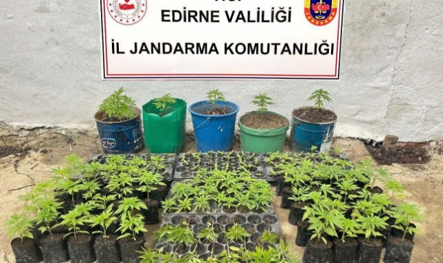 Edirne'nin Keşan ilçesinde evinde Hint keneviri yetiştiren şüpheli gözaltına alındı.Valilikten yapılan açıklamaya göre, İl Jandarma Komutanlığı ekipleri, kaçakçılık olaylarının engellenmesine yönelik çalışmalarını sürdürüyor.Ekipler, Keşan'a bağlı Siğilli köyünde uyuşturucu şüphelisinin evinde arama yaptı.Aramada, saksılar içinde yetiştirilen 196 kök Hint keneviri ele geçirildi.Gözaltına alınan şüphelinin jandarmadaki işlemleri sürüyor.(AA)