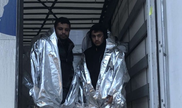 Edirne Hamzabeyli Sınır Kapısı'nda tırda 2 düzensiz göçmen yakalandı.Alınan bilgiye göre, yurt dışına çıkış yapmak için sınır kapısına gelen bir tır şüphe üzerine X-ray cihazına yönlendirildi.Taramada fark edilmesi üzerine tırın dorsesinde yapılan aramada, alüminyum folyo kaplı kıyafet giydikleri belirlenen 2 düzensiz göçmen yakalandı.İl Göç İdaresine gönderilen düzensiz göçmenlerin, X-ray cihazlarının vücut ısılarının tespit edilmemesi için alüminyum folyo kaplı kıyafet giydikleri tespit edildi.(AA)