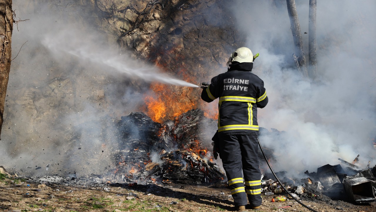 Geri dönüşüm işçisi İbrahim Karaarslan, yangında üç günde topladığı malzemelerin heba olduğunu söyledi. (AA)