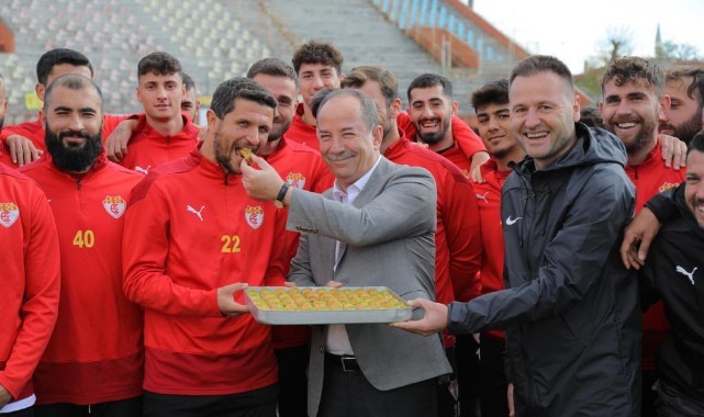 Edirne Belediye Başkanı Recep Gürkan, Edirnespor futbolcularına moral baklavası ikram etti.