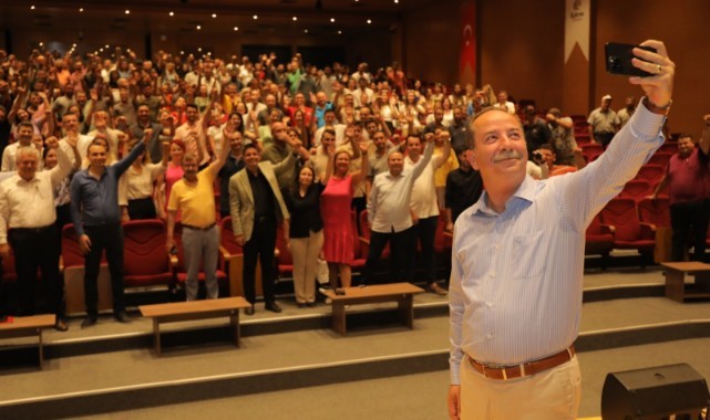 İmza töreni öncesinde personeline seslenen Başkan Gürkan, her zaman işçinin ve emekçinin yanında olduğu ifade etti,