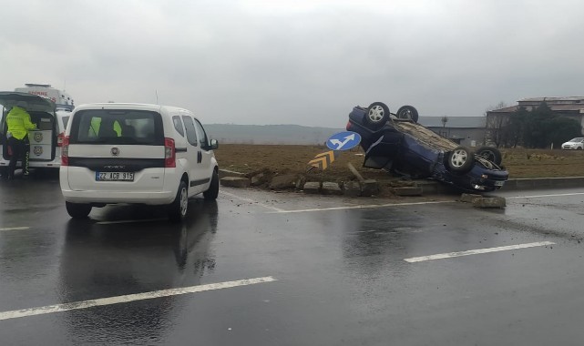 Kazada yaralanan otomobil sürücüsü E.G. sağlık ekiplerince Keşan Devlet Hastanesine kaldırıldı.(AA)