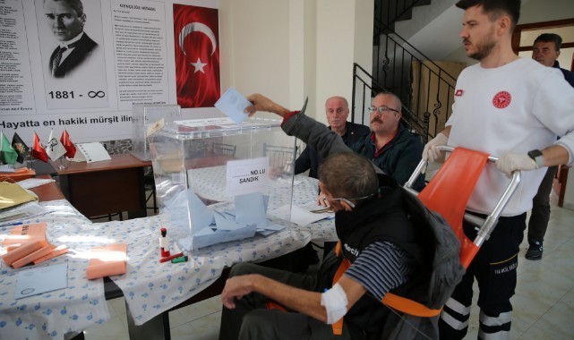 Trakya'da hastalığı ya da engeli nedeniyle sandık başına gidemeyen seçmenler, "seyyar sandık" uygulamasından faydalanarak oylarını kullanıyor.Edirne'de Sultan 1. Murat Hastanesi'nde solunum rahatsızlığı nedeniyle tedavi gören 62 yaşındaki Osman Morto, hastaneden hasta nakil aracıyla Bosnaköy köyü muhtarlığına götürüldü.Morto burada sağlık ekiplerinin yardımıyla oyunu kullandı.KIRKLARELİ VE TEKİRDAĞKırklareli İl Seçim Kurulu görevlileri, Bademlik Mahallesi'nde ikamet eden ve oy kullanmaya gidemeyecek derecede hasta olan 84 yaşındaki Gülsevim Eskici'nin evine seyyar sandık götürdü.Sandık görevlileri, getirdikleri taşınabilir kabini Eskici'nin bulunduğu odadaki sehpa üzerine yerleştirdi ve oy kullanma işlemi hakkında bilgi verdi.Eskici, oyunu kullandıktan sonra seçimlerin hayırlı olmasını diledi.Kentte 7 kişinin seyyar sandıkta oy kullanacağı öğrenildi.Tekirdağ'ın Süleymanpaşa ilçesinde yaşayan 90 yaşındaki Halil İbrahim Ayaz'ın evine de seyyar sandık götürüldü.Oyunu kullanan Ayaz, seçimlerin Türkiye ve şehirler için hayırlı olmasını diledi.Tekirdağ'da 14 kişi seyyar sandıkta oy kullanacak.(AA)