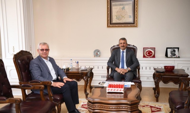 Keşan Belediye Başkanı Mustafa Helvacıoğlu, Edirne Valisi Yunus Sezer’i makamında ziyaret etti.