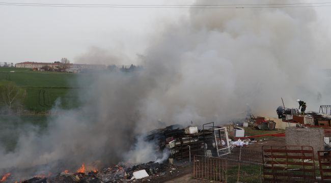 Yeni İmaret Mahallesi'nde hurda malzemelerin depolandığı alanda henüz belirlenemeyen nedenle yangın çıktı.