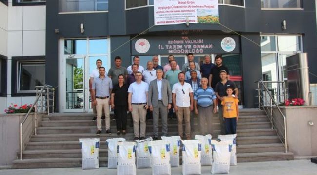 Edirne Tarım İl ve Orman Müdürlüğünden yapılan açıklamaya göre, “İkinci Ürün Ayçiçeği Üretiminin Arttırılması Projesi” kapsamında üreticilere 4 bin 150 kilogram yağlık hibir ayçiçeği tohumu verildi. Proje sonucunda ise 1.750 ton ayçiçeği üretimi beklendiğini bildirildi.