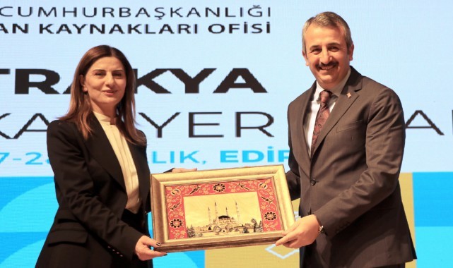 Edirne Valisi Yunus Sezer ve Trakya Üniversitesi Rektörü Prof. Dr. Erhan Tabakoğlu, konuşmaların ardından konuşmacılara hediye takdim etti.