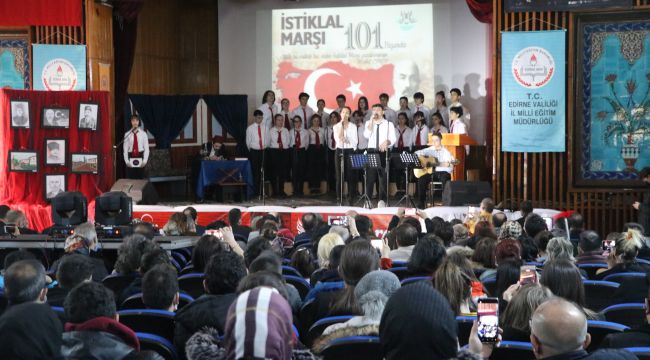 Programa, Edirne Vali Yardımcısı Ali Uysal, il protokol üyeleri, siyasi parti temsilcileri, öğrenci ve vatandaşlar katıldı. (AA)