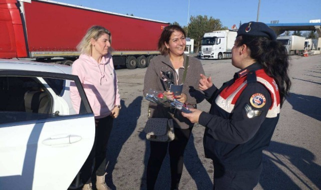 Edirne İl Jandarma Komutanlığı Aile İçi Şiddetle Mücadele ve Çocuk Kısım Amirliği tarafından 25 Kasım Kadına Yönelik Şiddetle Mücadele Günü kapsamında Edirne TEM otoyolu gişelerinde kadın vatandaşlara yönelik farkındalığı arttırmak maksadıyla karanfil ve broşür dağıtılarak bilgilendirme ve bilinçlendirme faaliyeti gerçekleştirilerek KADES Uygulaması tanıtımı yapıldı. (Haber Merkezi)