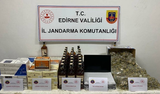 Edirne İl Jandarma Komutanlığınca, özellikle maddi ve manevi kayıplara neden olan ve akabinde değişik suç olaylarının çıkış noktasını teşkil edebilen Kaçakçılık olaylarının engellenmesine yönelik çalışmalarına ara vermeden devam edilerek İstanbul istikametine gitmekte olan bir otobüs firmasına ait araçta, TEM gişelerinde durdurularak arama yapıldı. Jandarma KOM Şube Müdürlüğü tarafından otobüste yapılan aramada, piyasa değeri yaklaşık 300 bin TL olan Gümrük kaçağı 26 adet kaçak alkollü içki, 170 paket kaçak tütün, 210 paket gümrük kaçağı sigara, 5 adet dizüstü bilgisayar ile 330 adet termostatik vana ele geçirilerek el konuldu. Yapılan işlemlerin ardından şüpheli şahıs adli makamlara sevk edildi.