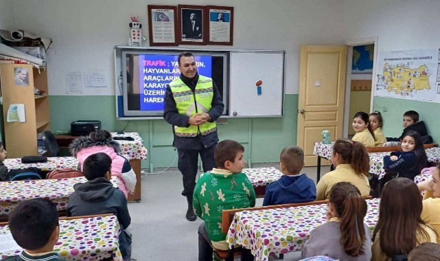 Trafik jandarması ilkokul öğrencilerine trafik eğitimi verdi. Gerçekleştirilen eğitim faaliyetinde temel trafik eğitimi, servis araçlarının kullanımı gibi başlıklar üzerinden bilgi verildi.