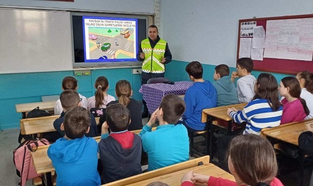 Edirne İl Jandarma Komutanlığı trafik ekipleri ortaokul öğrencilerine temel trafik ve yayaların uymaları gereken kurallar konusunda eğitim verdi.