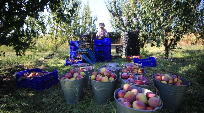 Bursa'dan temin ettiği 10 fidanla üretime başlayan, Tarım ve Orman Bakanlığının desteğiyle üretim alanını 4,5 dönüme çıkartan Efe, 900 ağaca ulaştığı bahçede hasat yapıyor.