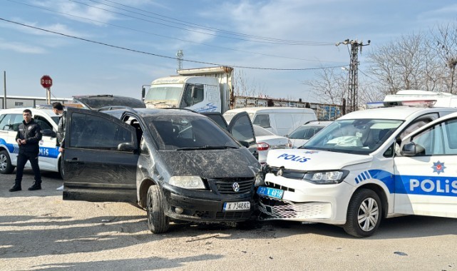 Takibe alınan sürücünün kullandığı araç, ekip otosuna çarptı.