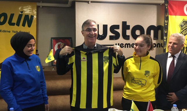 Açıklamaların ardından Kadın Futbol Takımı Yardımcı Antrenörü Ayşegül Yağar ve Futbolcu Nisa Akdağ, Edirne Yağ Sanayi A.Ş Genel Müdürü Mehmet Edip Ağaoğulları’na adının yazılı olduğu 22 numaralı formayı hediye etti. (Haber-Fotoğraf: Ali KARAMAN)