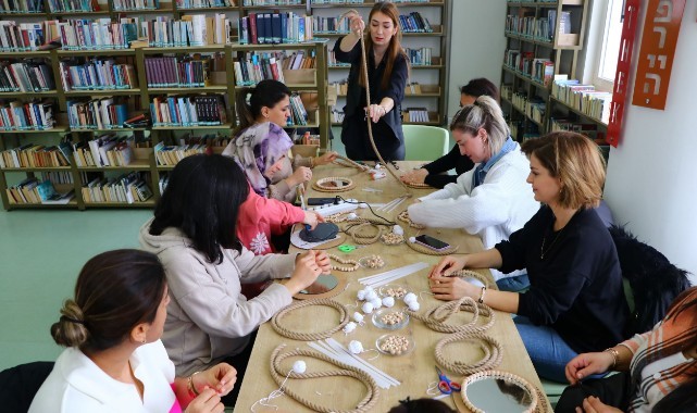 Tekirdağ Namık Kemal Kütüphanesinde oluşturulan atölyede kadınlar, el becerilerini geliştirip, yeni ürünler ortaya çıkartıyor. Kütüphaneye ilgiyi artırmak için yetişkinler için örgü, ebru, ayna tasarım ve taş boyama gibi atölye çalışmaları düzenlendi.
