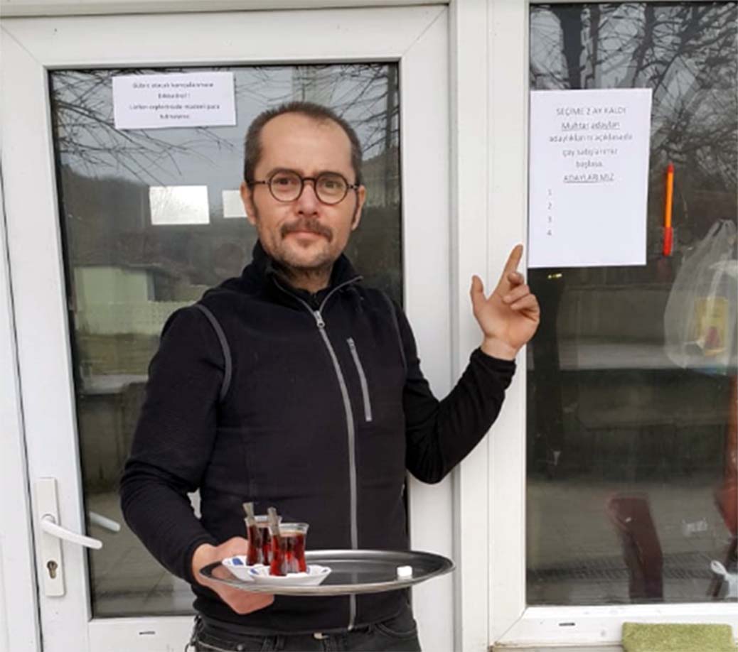 Daha önceki seçimlerde muhtar adaylarının seçimi kazanabilmesi için köy kahvesindekilere çay ısmarladıklarını belirten Öztürk, “Önceki seçimlerde adaylar, muhtar olabilmek için kahvede bulunan herkese zaman zaman çay söylüyor. Bu seçimde de bu beklentideyiz. Ama hala kimse adaylığını açıklamadı. İki kişinin adı geçiyor ama hala resmiyet kazanmadı. Bir tek seçim dönemlerinde günlük çay satışımızın ortalamasında artış oluyor. Burası da bizim ekmek kapımız. Esprili bir şekilde bende bunu dile getirmek istediğim için böyle bir yazı yazdım” şeklinde konuştu.