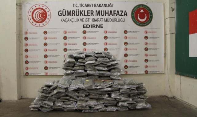 Edirne Kapıkule Gümrük Kapısı’nda yüklü miktarda uyuşturucu madde ele geçirildi. Edirne Gümrük Muhafaza Kaçakçılık ve İstihbarat Müdürlüğü ekipleri ve Edirne İl Emniyet Müdürlüğü ekiplerinin ortak gerçekleştirdiği operasyonda bir araçta yapılan arama sonucunda 220 kilogram uyuşturucu madde ele geçirildi. Yaklaşık piyasa değerinin 95 milyon lira olduğu açıklanan esrar maddesini kaçırmak isteyen şahıs için adli işlem başlatıldı.