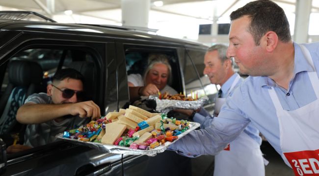 Edirne'yi Tanıtma ve Tava Ciğer Kalite Kontrol Derneği Başkanı Bahri Dinar ile Dernek Yönetim Kurulu Üyesi şekerlemeci Arif Meriç, Kapıkule Sınır Kapısı'ndan Türkiye'ye giriş yapan gurbetçilere tava ciğer ile yöresel tatlılar ikram etti, hayırlı yolculuklar diledi.