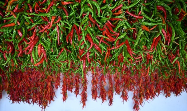 Edirne'nin meşhur lezzeti tava ciğerinin garnitürü acılığı ve lezzetiyle meşhur Karaağaç biberinin kurutma mesaisi başladı.