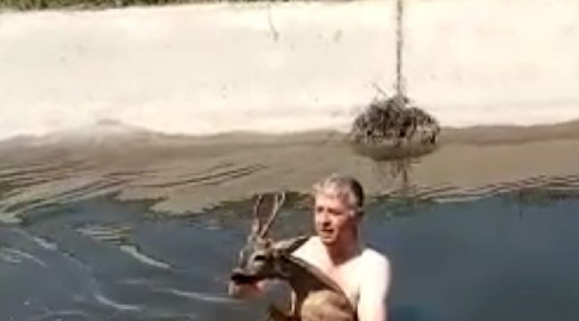 Korkan, sudan çıkmak için mücadele eden karacayı bulunduğu yerden çıkararak kanalın yanında bekleyen köy sakinlerine verdi.