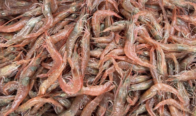 Ağlara takılan karides tezgahlarda satışa sunuldu.