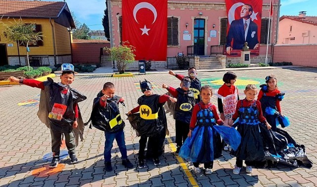 Okulun 1/A sınıfı öğrencileri, öğretmenleri Özlem Egemen rehberliğinde tamamen geri dönüştürülebilir malzemeler kullanarak kostümler hazırladı. Karton, plastik, gazete kâğıdı, poşet ve çeşitli ambalaj atıklarından oluşturulan kıyafetler, çocukların hayal gücüyle birleşerek dikkat çekici tasarımlara dönüştü.