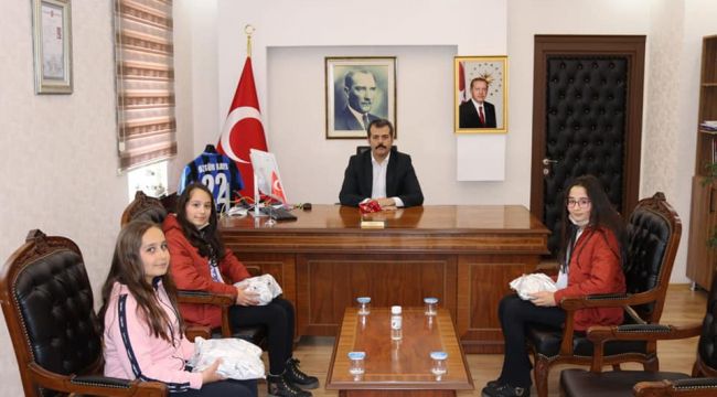 Kaymakamlıktan yapılan açıklamaya göre, Mevlid-i Nebi Gençlik Bilgi Yarışması'nda dereceye giren Cumhuriyet Ortaokulu öğrencilerinden Sıla Kalaycı ve Simge Kalaycı'ya Kaymakam Kaya tarafından hediye verildi.