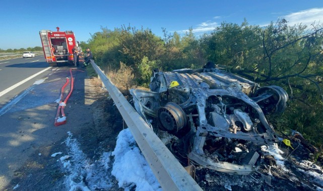 Tekirdağ’ın Ergene ilçesinde bariyere çarparak alev alan otomobildeki sürücü hayatını kaybetti.