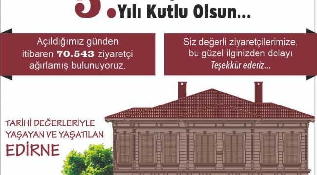 Belediyeden yapılan açıklamada, 5 Mayıs 2017 tarihinde müze haline getirilen Edirne Kent Müzesi’ni Edirne’den, yurtiçi ve yurtdışından 70 bin 543 vatandaş ziyaret etti.