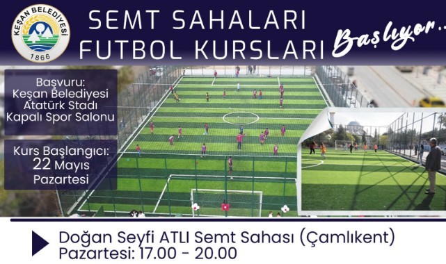 Semt sahaları futbol kursları yaz boyunca Pazartesi günleri Doğan Seyfi Atlı Semt Sahası, Çarşamba günleri Şehit Eren Bülbül Semt Sahası, Cuma günleri Enerji Park Semt Sahası’nda 17.00-20.00 saatleri arasında verilecek.