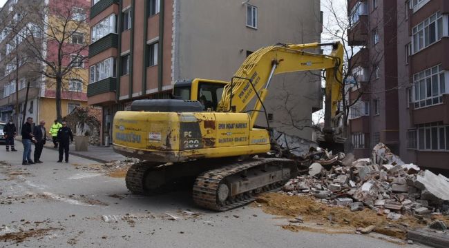 Belediyeden yapılan açıklamada, kullanılmayan ve çevresi için tehlike oluşturan metruk binaların belediye ekiplerince yıkıldığı belirtildi.