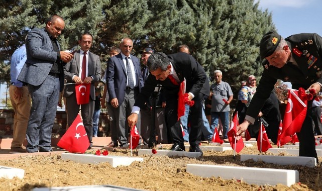 Şehitler için dua okunmasının ardından kabirlere karanfil bırakıldı. (AA)
