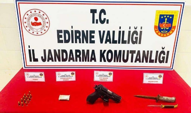 Edirne'de jandarma ekiplerinin "dur" ihtarına uymayan ve kovalamaca sonucu yakalanan araçta uyuşturucu ve silah ele geçirildi, 2 şüpheli gözaltına alındı.