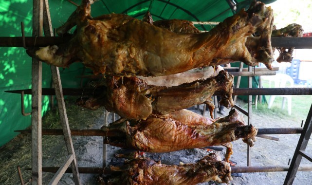 Bir kuzuyu pişirirken 30 kilogram kömür harcadıklarını belirten Jalil, kuzunun pişerken yüzde 35 fire verdiğini dile getirdi. (AA)