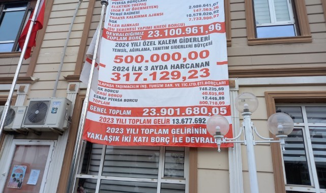 Göreve geldikten sonra Belediyenin mali durumunu incelemek istediklerini belirten Geldi, “Halkımıza söz verdiğimiz gibi şeffaf belediyecilik ilkesine uyarak halkımızla paylaştık. 31 Mart itibariyle Belediyemizin borç dökümünü çıkarttık. Geçen yıl gelirinin iki katı borçlu bir belediyeyi teslim aldık. Toplamda 23 milyon 901 bin lira borcumuz var. Temsil, ağırlama ve tanıtımında 3 ayda 3’te 2’si harcanmış durumdadır” ifadelerini kullandı. Geldi bu borç dökümünü bazı belediyelerin yaptığı gibi Belediye binasının duvarına asarak halkla paylaştı.