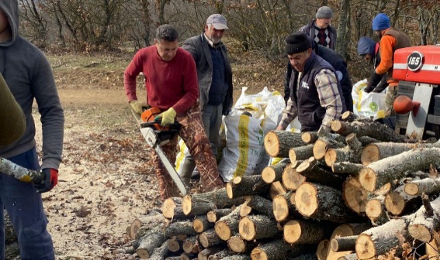 7’den 70’e her yaştan vatandaşın tek yürek olduğu yardım seferberliğinde, Edirne Orman İşletme Müdürlüğü’nün tahsis ettiği alanda kesilen odunlar, poşetlenerek, hazır hale getirildi.