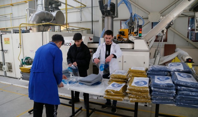 Çerkezköy Türk Tekstil Vakfı Mesleki ve Teknik Anadolu Lisesi öğrenci ile öğretmenlerinin, soğuk havanın etkili olduğu deprem bölgesindeki afetzedeler için hazırladığı ürünler, AFAD koordinasyonunda yerine ulaştırılıyor.
