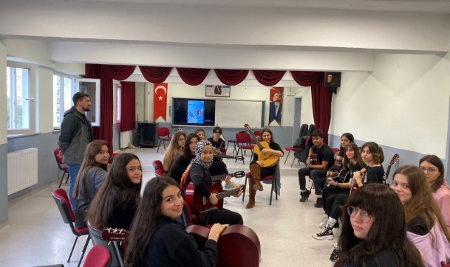 Atölye çalışmasında öğrencilere gitar hakkında bilgiler aktarılarak, çalma becerisine ilişkin teknikler ve egzersiz gibi konulara yer verildi. Farklı gitar çeşitleriyle tanışan öğrenciler, sonrasında atölyede gitar çalmayı deneyimledi. Ayrıca gitar eğitimi ile ilgili öğrencilerin merak ettiği sorular cevaplanırken, etkinliğe öğrencilerin gösterdiği ilgi yoğun oldu. (Haber Merkezi)