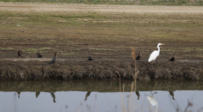 Arazide toplu halde yiyecek arayan binlerce kuş, seyirlik görüntü oluşturdu. Bölgedeki su kanalları da göçmen kuşlar için önemli bir yaşam alanı olarak öne çıkıyor.