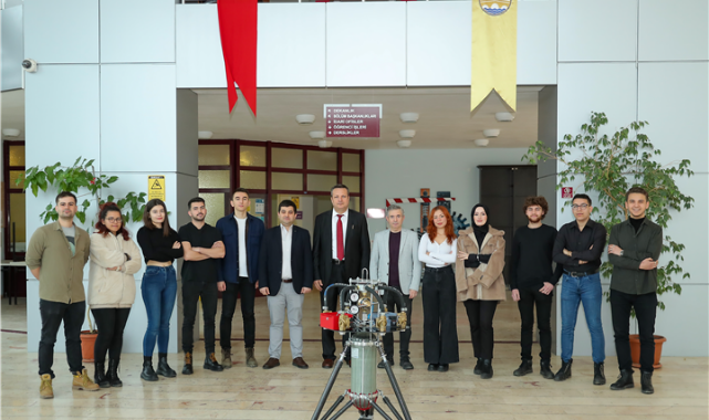 Ankara’daki TÜBİTAK SAGE Merkezi’nde, 3-5 Nisan tarihleri arasında gerçekleştirecekleri deneme atışı öncesi danışmanları Doç. Dr. Mustafa Arda ve Mühendislik Fakültesi Dekanı ve Rektör Yardımcısı Prof. Dr. Metin Aydoğdu ile birlikte Rektör Prof. Dr. Erhan Tabakoğlu’nu ziyaret eden öğrenciler, hedefleri hakkında bilgi verdi.