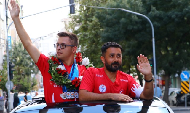 İtalya'da düzenlenen Avrupa Şampiyonası'nda kendisine ait dünya rekorunu geliştirerek, Avrupa şampiyonu olan down sendromlu milli atlet Emirhan Akçakoca, memleketi Tekirdağ'da coşkuyla karşılandı.