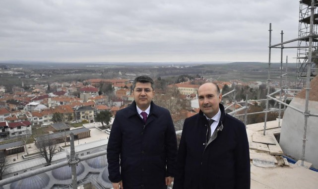 Programın bu kısmında Edirne Valisi Hüseyin Kürşat Kırbıyık ve Milli Saraylar Başkanı Yasin Yıldız, Selimiye Camisini ziyaret ettiler. Burada devam eden restorasyon çalışmalarını yerinde gören Vali Kırbıyık ve Başkan Yıldız, yüklenici firma yetkililerinden yürütülen çalışmalar hakkında bilgi aldı.