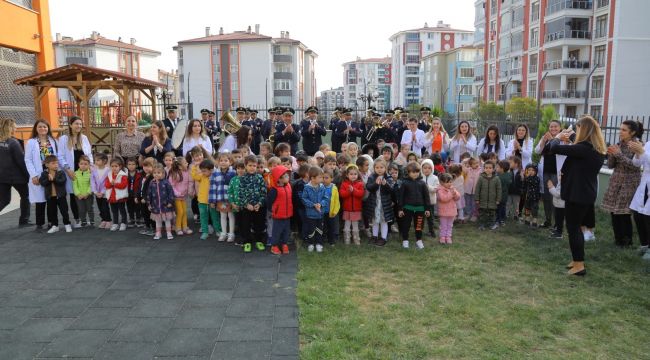 Bu kapsamda Edirne Belediye Bandosu, Edirne Belediyesi Kırkpınar Ağası Seyfettin Selim Kreş ve Gündüz Bakımevi’nin minik öğrencilerine Atatürk’ün sevdiği şarkılardan oluşan repertuvarı ile minik bir dinleti sundu.